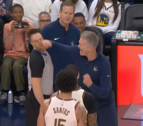 这是一段勇士主帅科尔暴揍裁判的视频。